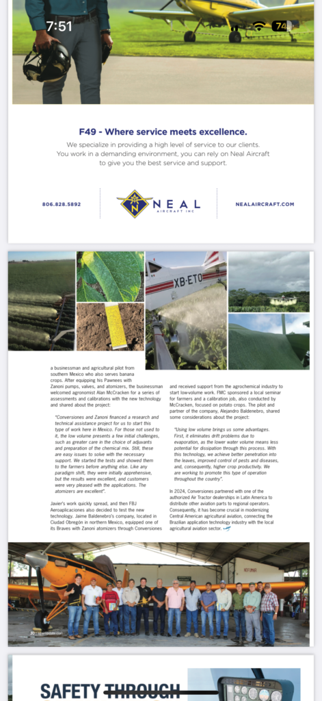 Tecnología Brasileña en equipos de aspersión, atomizadores rotativos que ofrecen una mejor cobertura y que nos permite configurar los aviones para trabajar a diferentes volúmenes en pocos segundos .
